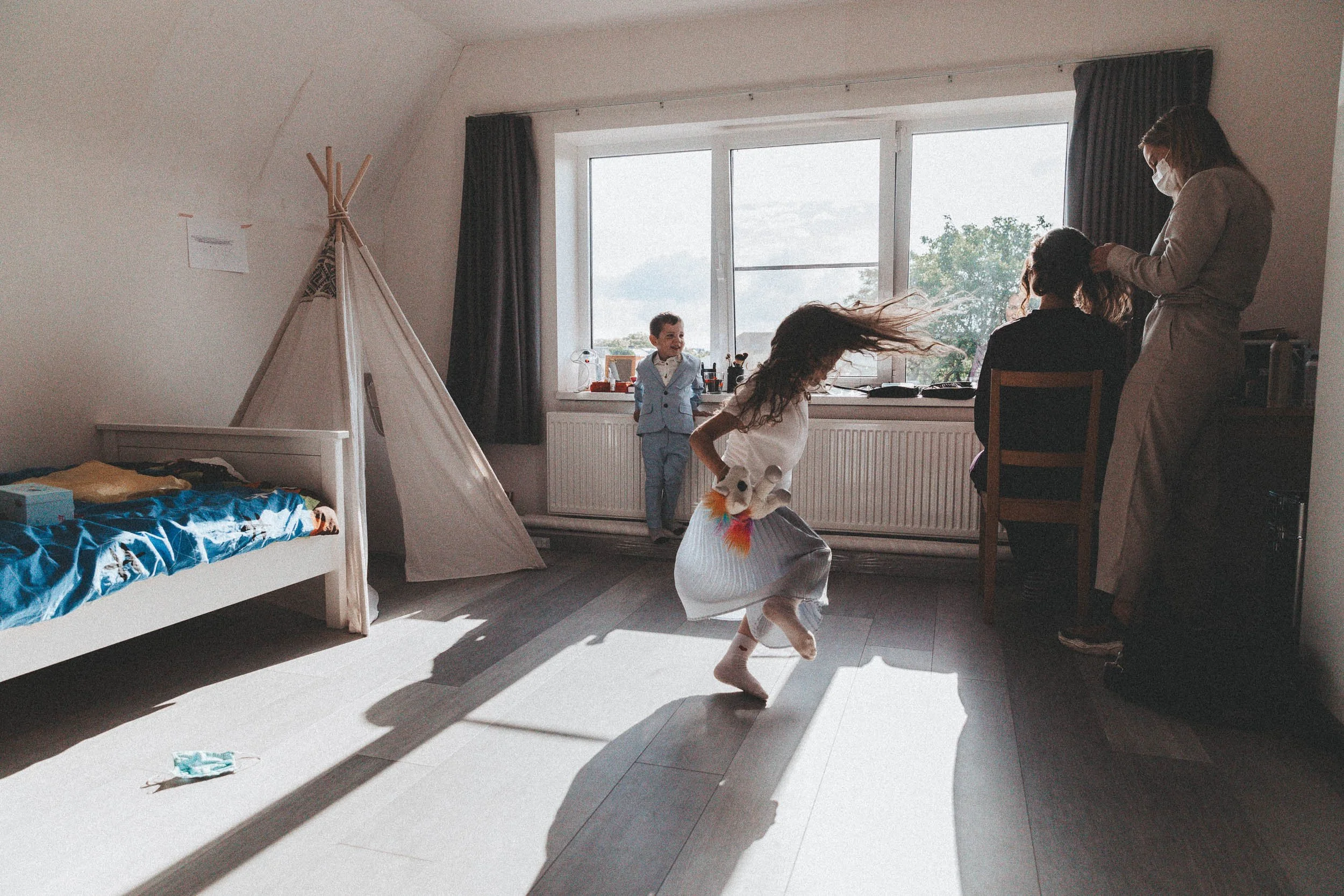 Tijd voor foto’s vóór de plechtigheid, tijdens, erna. Want je mama die aan het vechten is met haar krulspelden, je zus die de 100 knoopjes op de rug van je jurk probeert dicht te krijgen, je papa die de champagne klaarzet en voorproeft of je beste vriend die nog snel het stof van de ceremoniewagen blaast en een vlekje wegveegt van de voorruit met zijn witte hemdsmouw. Ook dát is liefde.